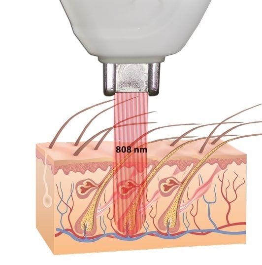 Пигмент поглощает энергию, излучаемую лазером, волосяная луковица разрушается и волос перестает расти.